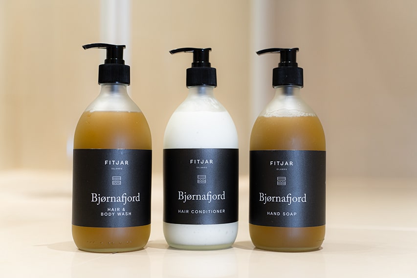 Vi har valgt å gå bort fra engangssåper og bruker nå påfyllbare dispensere i alle gjesterom. Dette reduserer plastavfall og gir en renere, mer bærekraftig løsning – uten å gå på kompromiss med eleganse og kvalitet.